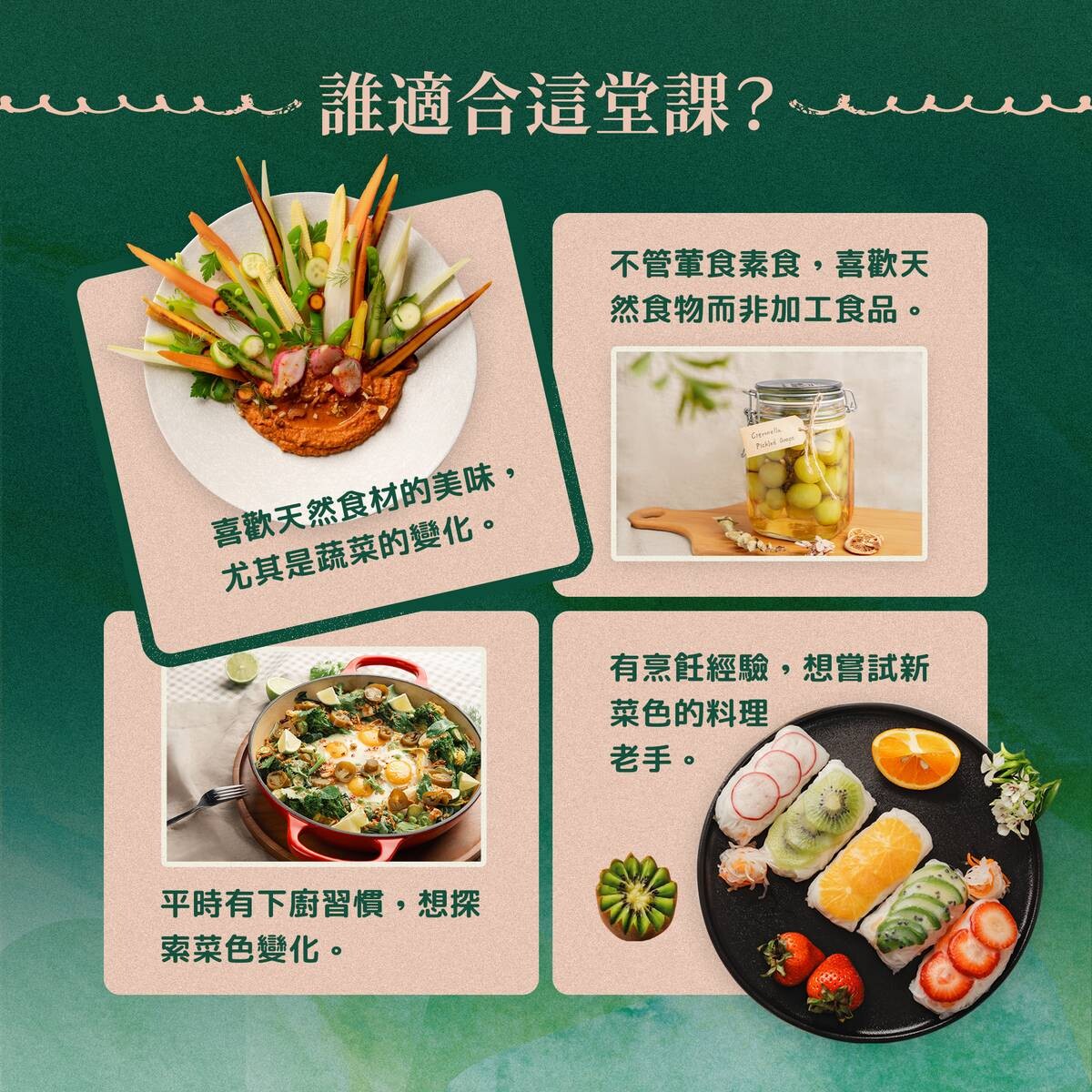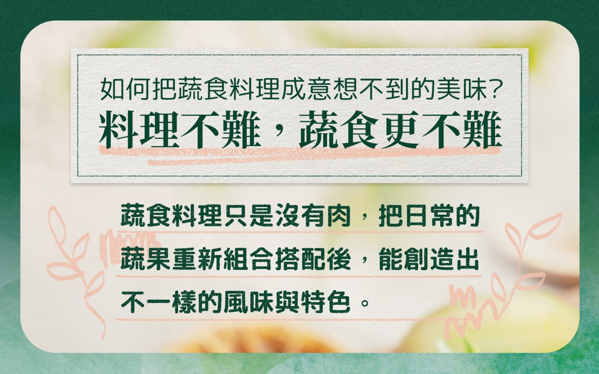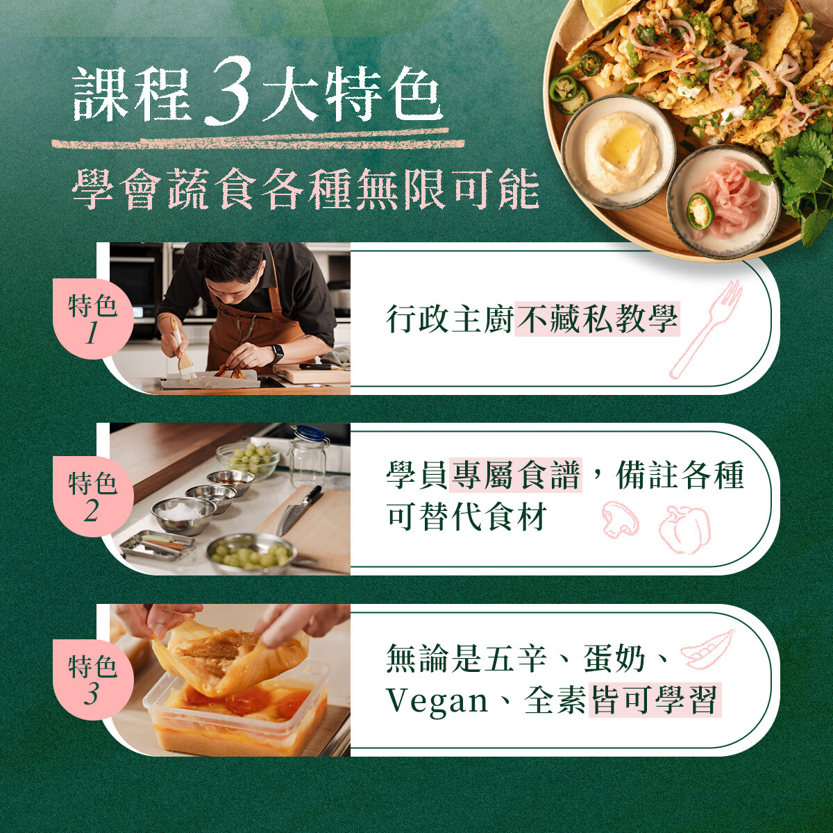 →課程教學的創新蔬食,專屬餐會以專屬優惠價優先報名!